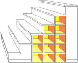| 壁面は天井高さいっぱい迄収納スペースとして使う、間仕切り壁・手摺壁の厚みを利用しての棚等々。既製品の床下収納庫もキッチンではおなじみです。 (壁面については構造上必要な壁を考慮の上となります。) |