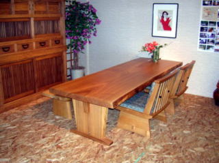 | 住宅を設計する際、 そこに大きな割合を占める家具の存在。 A-boxでは作り付け家具は勿論 そうでないものもを提案させて頂きます。 その中で最近天然の無垢板の一枚モノを天板に使用する ケースも増えてきています。 キッチンのカウンター、洗面カウンター 一番ポピュラーなものとしてはリビングorダイニングテーブル。 |